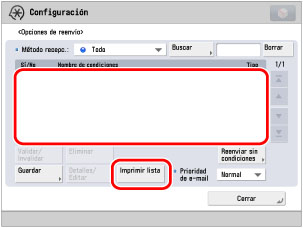 En la pantalla de confirmación, pulse [Sí] para imprimir la lista de las opciones de reenvío.