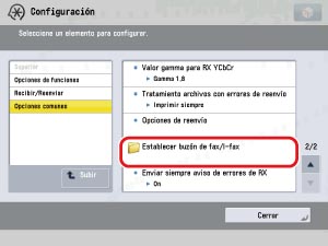 → [Opciones de funciones] → [Recepción/Reenvío] → [Opciones comunes] → [Establecer buzón de fax/I-fax].