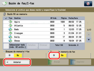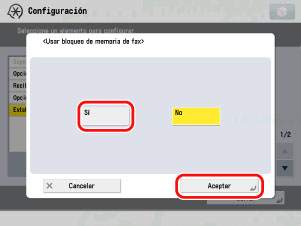 Pulse [Sí] para <Bloqueo de memoria de fax> → [Anterior].