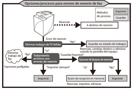 Cuando ocurra un error de reenvío, el equipo procesará el fax de la siguiente forma.