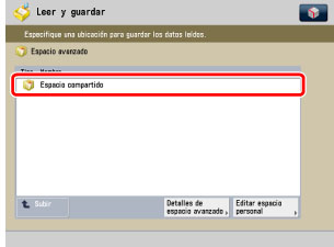 Pulse  → [Opciones de funciones] → [Guardar/Acceder a archivos] → [Opciones de espacio avanzado] → [Hacer público].