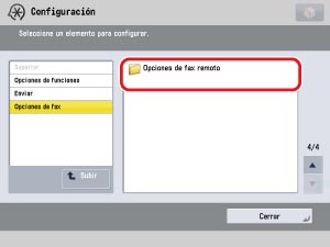 → [Opciones de funciones] → [Enviar] → [Opciones de fax] → [Opciones de fax remoto].