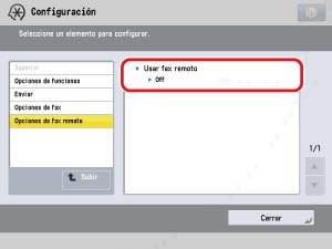 Seleccione [Sí] para <Usar fax remoto> → pulse [Aceptar].