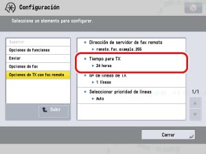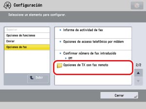 → [Opciones de funciones] → [Enviar] → [Opciones de fax] → [Opciones de TX con fax remoto].
