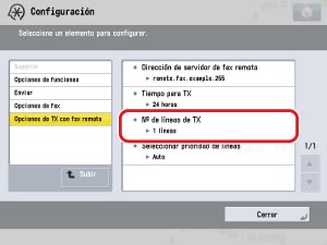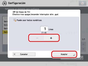 Pulse [-] o [+] para establecer el número de líneas telefónicas que desee utilizar → pulse [Aceptar].