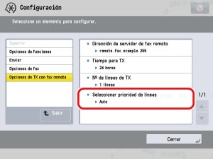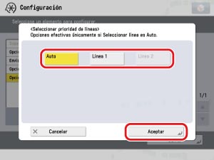 Seleccione [Auto] o la línea que desee utilizar con prioridad → pulse [Aceptar] → [Cerrar].