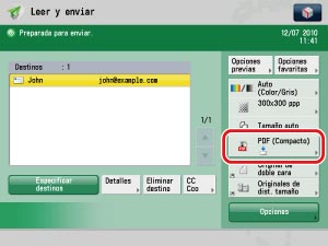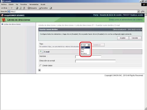 Dirección de e-mail adquirida para el equipo imageRUNNER ADVANCE