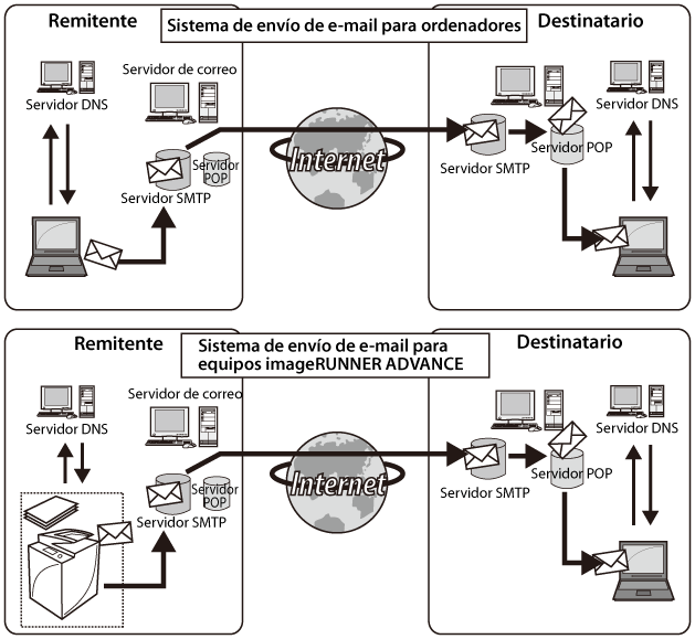 Los equipos imageRUNNER ADVANCE no admiten la recepción de e-mail.