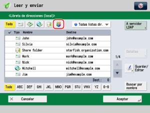 Pulse [Leer y enviar] en la pantalla Menú principal → [Libreta de direcciones] → [