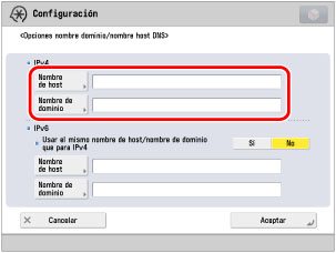 En la pantalla [Opciones de DNS (IPv4)], marque [Nombre de host] y [Nombre de dominio].