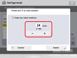 Haga clic en [Opciones de I-fax] → introduzca el valor en <Tiempo para TX en modo completo>.