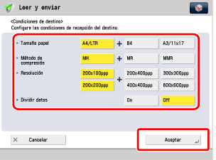 → [Opciones de funciones] → [Enviar] → [Opciones de e-mail/I-fax] → [Opciones de comunicación].