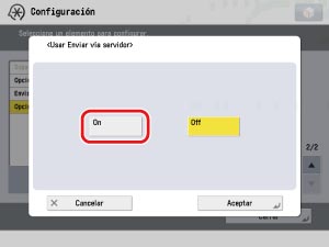 → [Opciones de funciones] → [Enviar] → [Opciones de e-mail/I-fax] → [Usar Enviar vía servidor].