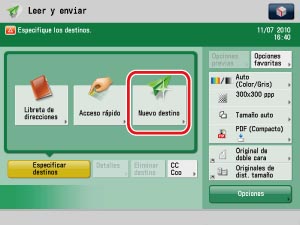 Pulse [Leer y enviar] en la pantalla Menú principal → [Nuevo destino].