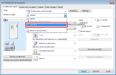 Con opciones previas, puede guardar las opciones de envío y recuperarlas después.