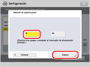 Siga los procedimientos indicados a continuación para activar [Gestión de autenticación].