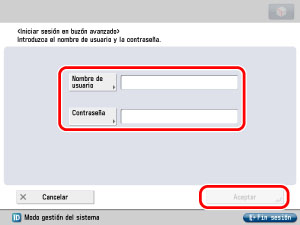 Introduzca el nombre y la contraseña establecidos en el paso 5 en "Guardar información del usuario" → haga clic en [Aceptar].