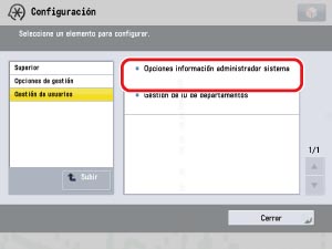 → [Opciones de gestión] → [Gestión de usuarios] → [Opciones información administrador sistema].