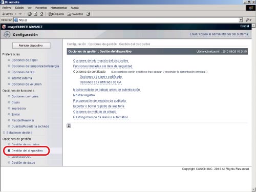 → [Opciones de gestión] → [Gestión del dispositivo].