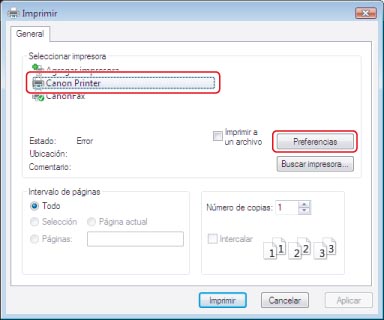 La pantalla de impresión puede variar en función del tipo de aplicación que esté utilizando.