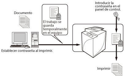 Debe volver a introducir la contraseña para imprimir desde el equipo. Cuando haya establecido la contraseña del documento, anótela y guárdela en un lugar seguro.