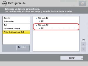 Pulse [Filtro de direcciones IPv6] → [Filtro de RX].