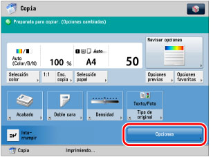 Pulse [Opciones] en la pantalla Funciones básicas de copia.