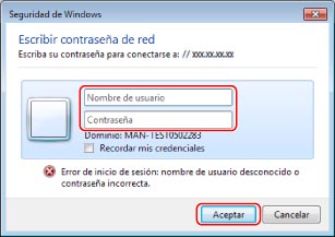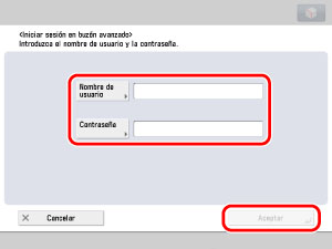 Si aparece la pantalla Iniciar sesión, introduzca el nombre de usuario y la contraseña → pulse [Aceptar].