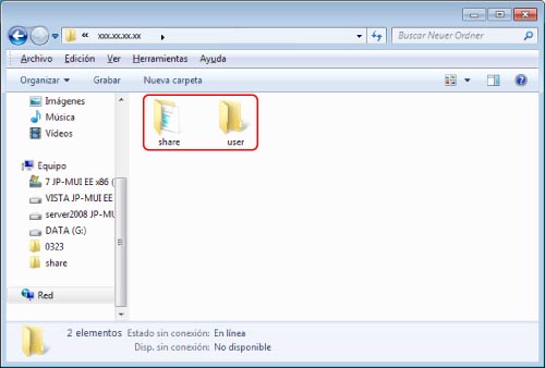 Seleccione la carpeta [share] o [users] en el espacio avanzado.