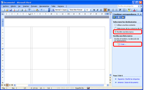 Seleccione [Escribir una lista nueva] para [Seleccione los destinatarios] → haga clic en [Crear].