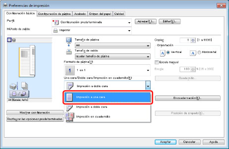 Seleccione [Impresión a una cara] en [Estilo de impresión].