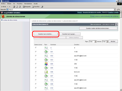 Haga clic en [Guardar nuevo destino] → Aparecerá la pantalla Guardar nuevo destino.