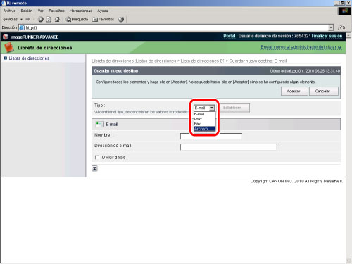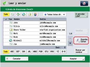 Puede guardar una dirección de E-mail de forma efectiva desde la IU remota.