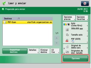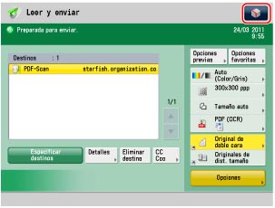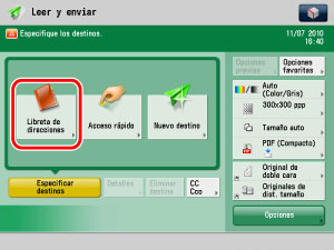 Podrá establecer el inicio de sesión/destino desde el equipo, pero no podrá utilizar la función Pulsar Leer.