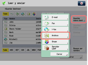 Pulse [Guardar nuevo dest.] → [Archivo].