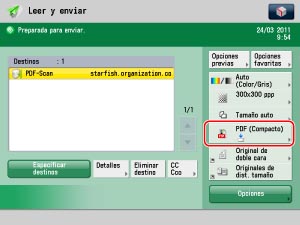 Puede convertir imágenes de originales en color/escala de gris leídas con un resolución de 300 ppp para compactarlas en archivos PDF o XPS (aprox. 1/10 del tamaño original). Este modo elimina la emisión de tamaño de archivo grande de documentos digitalizados, reduciendo los documentos de color al tamaño de documentos en blanco y negro. Esto también le permite reducir la carga de la red y de los servidores. Para obtener más información, consulte
