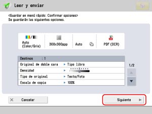 Si selecciona [No], deberá pulsar el botón guardado y pulsar luego  para iniciar el proceso de las opciones guardadas.