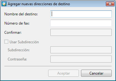 Los elementos que pueden introducirse en el cuadro de diálogo [Agregar nuevas direcciones de destino] son los siguientes: