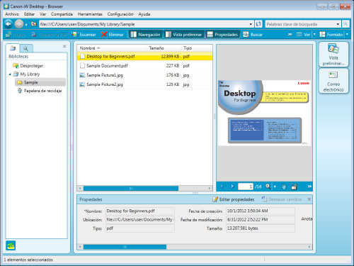 Seleccione una librería y una carpeta de la librería para mostrar el documento que se va a enviar por fax en el Panel de visualización de lista de archivos.
