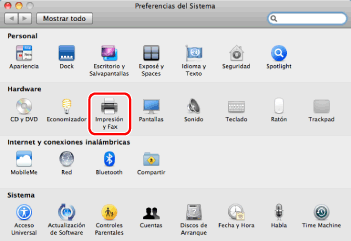 Abra [Preferencias del Sistema] → haga clic en [Impresión y Fax].