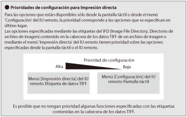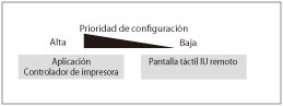 En el caso de las opciones que están disponibles sólo desde la pantalla táctil o la IU remota, la prioridad corresponde a las opciones que se especifican en último lugar.