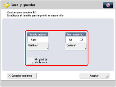 El equipo selecciona automáticamente la escala de zoom en función del tamaño de cuadernillo seleccionado.