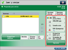 Puede seleccionar y enviar a hasta 256 destinos a la vez. Sin embargo, si como destino se especifica una dirección de grupo, cada dirección guardada en ese grupo se considerará un solo destino.