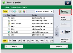 [Cambiar libr. direc.] sólo aparece si guarda tanto la libreta de direcciones remota como el servidor LDAP. Si sólo guarda la libreta de direcciones remota en el equipo, aparece [Libr. direc. remota].