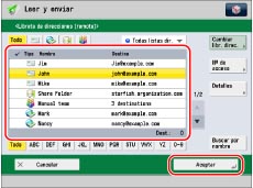También puede examinar destinos guardados en botones de acceso rápido de un equipo servidor desde un equipo cliente de la red. (Consulte "Especificar destinos con las teclas de acceso rápido".)