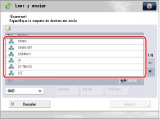 Seleccione el servidor de archivos deseado → seleccione la carpeta → pulse [Aceptar].