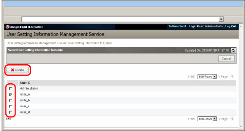 Haga clic en [Select User Setting Information to Delete].