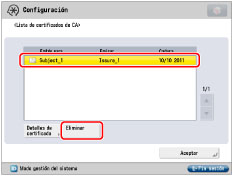 Seleccione el certificado de CA que desee eliminar → pulse [Eliminar].