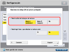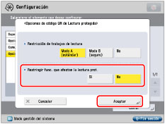 Pulse [Sí] o [No] para <Restringir func. que afectan la lectura prot.> → [Aceptar].