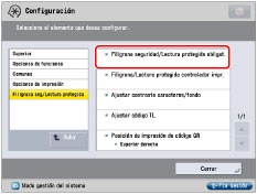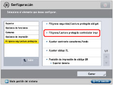 Esta función se muestra si se selecciona el código QR como código para el modo Lectura Protegida. (Consulte "Seleccionar el código para lectura protegida (Código TL/código QR)".)